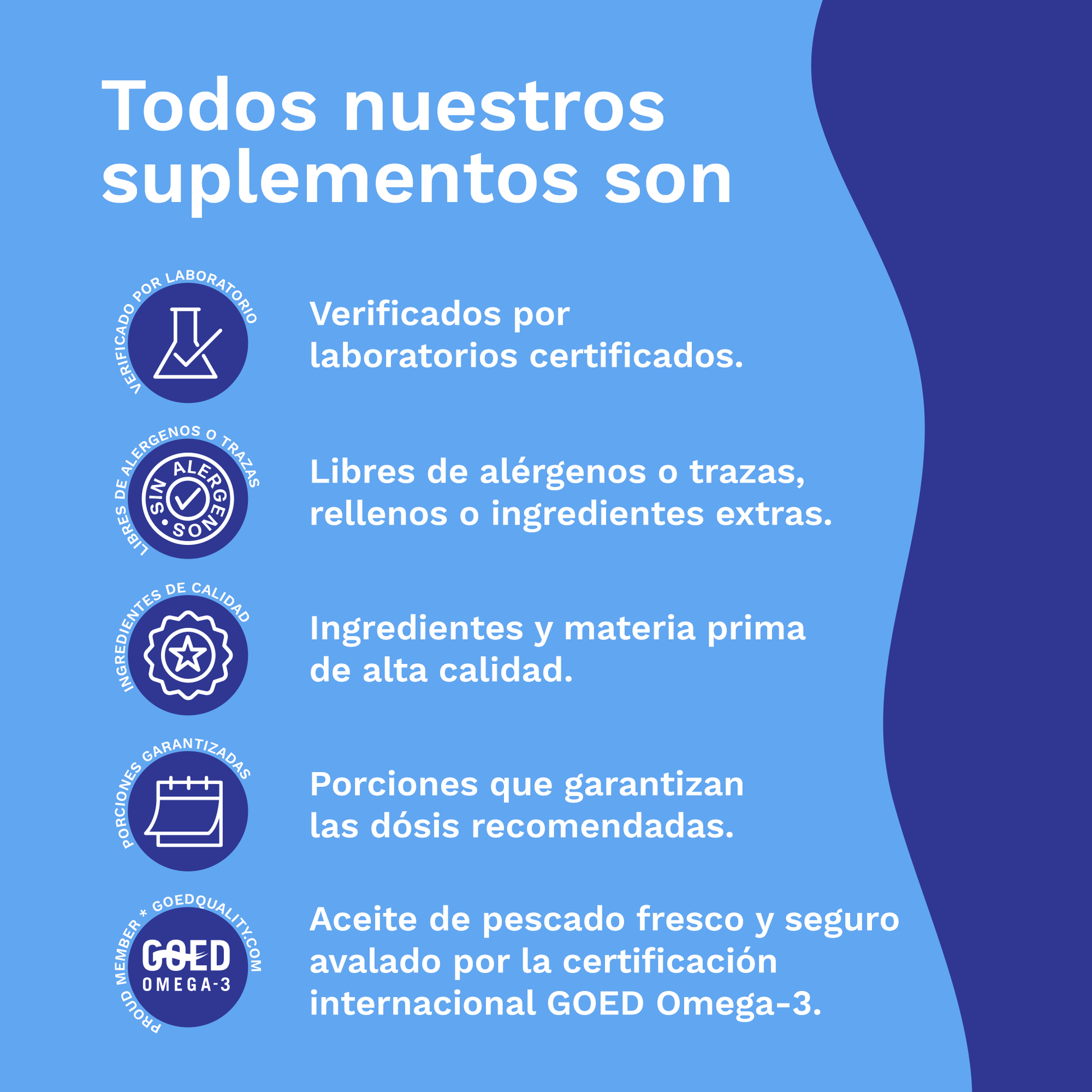 - Contiene ingredientes de alta calidad, los cuales se presentan en cápsulas de gel, con recubrimiento entérico; sin colorantes artificiales, sin gluten y avalado por el sello de Proud Member GOED Omega-3.