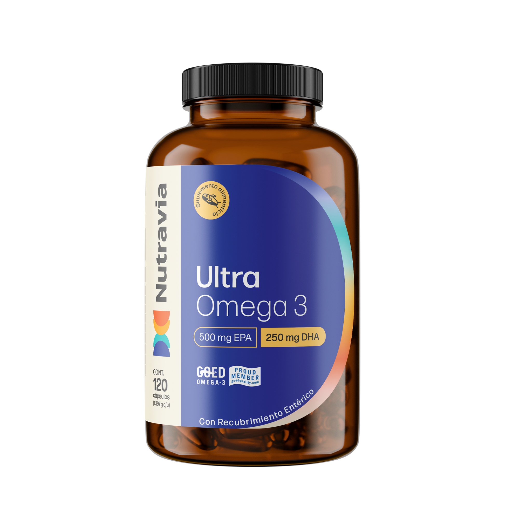 - Ultra Omega 3 de Nutravia, está formulado para suministrar la dosis segura de 500mg de EPA y 250 mg de DHA en solo 1 cápsula de gel.